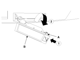 Снимите рассеиватель номерного фонаря (В), нажав на зажим (А).