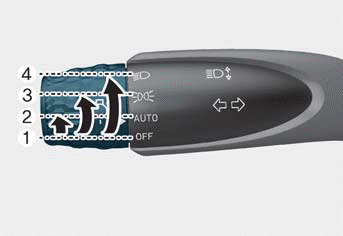 Для включения освещения поверните ручку в конец рычага управления к одному из следующие позиции: