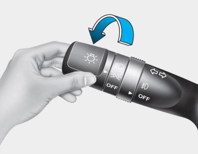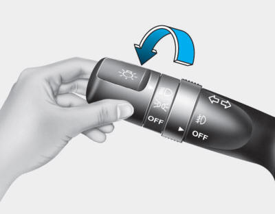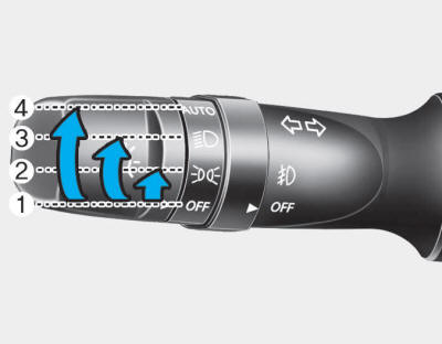 Для управления освещением поверните ручку на конце рычага управления в одно из следующие позиции: