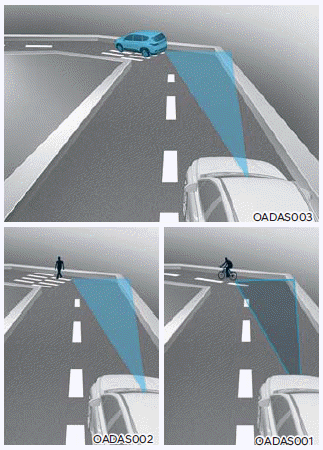 Когда впереди идущее транспортное средство отъезжает переулок, предотвращение лобового столкновения Assist может не сразу обнаружить другое транспортное средство на вашей полосе движения.