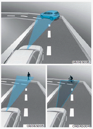 Если транспортное средство, пешеход или велосипедист обнаружен на соседней полосе или за ее пределами полоса движения при движении по кривой, Помощь в предотвращении столкновений вперед может предупредить вас и может затормозить автомобиль, даже если он не нужен.