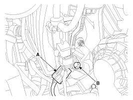 Выверните установочный болт (В) и снимите датчик с расширительного бачка.