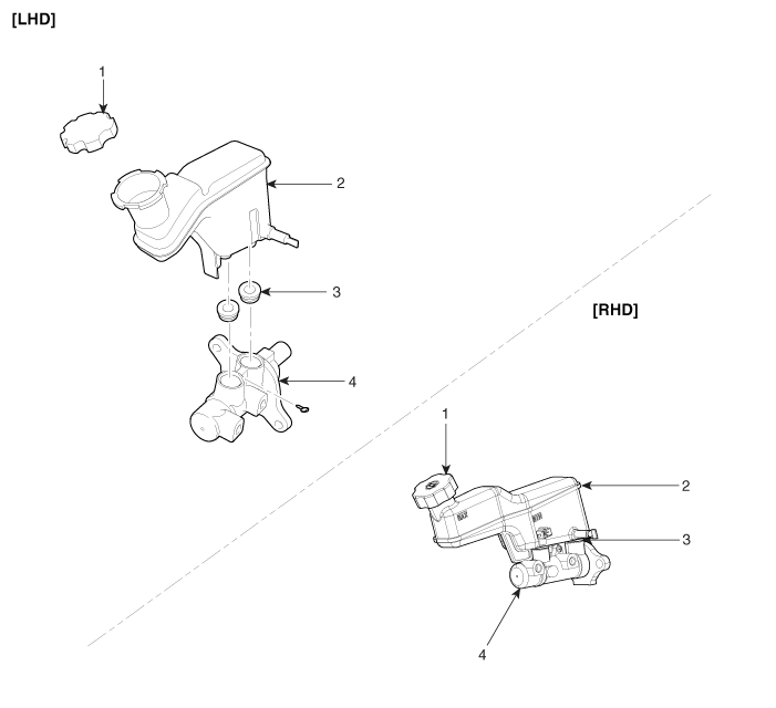 Hyundai Tucson (LM) 2010-2015 Руководство по ремонту / Тормозная система / Тормозная система / Компоненты главного цилиндра и расположение компонентов