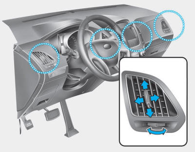 Также вы можете отрегулировать направление подачи воздуха из этих дефлекторов с помощью рычаг управления вентиляцией, как показано на рисунке.