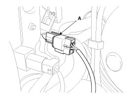 Отсоедините разъем переднего кислородного датчика (А), а затем снимите его с кронштейна.