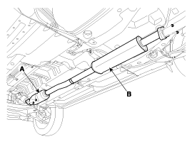 Снимите каталитический нейтрализатор и центральный глушитель (В).