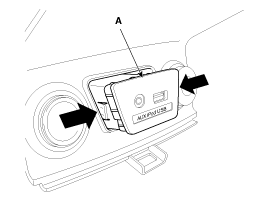 Снимите мультимедийный разъем (A) с модуля переключателя обогревателя сиденья, нажав на крючки.