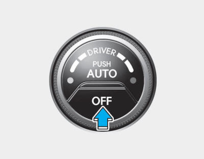Нажмите кнопку OFF, чтобы выключить систему климат-контроля. Однако вы может по-прежнему управлять кнопками режима и воздухозаборника, пока выключатель зажигания находится в положении ВКЛ.