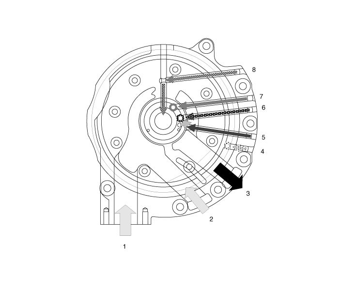 6. Смазка 7. Рабочее давление муфты блокировки. 8. Отмена блокировки сцепления |