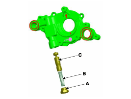 Снимите заглушку (А), пружину (В) и разгрузочный плунжер (С).