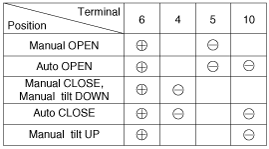 Заземлите клеммы в соответствии с таблицей ниже и убедитесь, что панорамная крыша работает в соответствии с таблицей ниже.