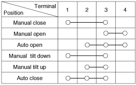 Проверьте целостность цепи между клеммами. Если непрерывность не соответствует указанной, замените переключатель люка.