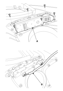 Снимите винты с переключателя электрического стеклоподъемника (А) и разъемов (В).