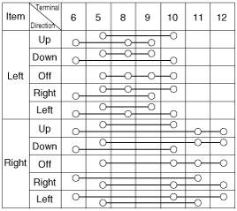 Проверьте целостность цепи между выводами выключателя наружных зеркал с электроприводом в соответствии с таблицей.
