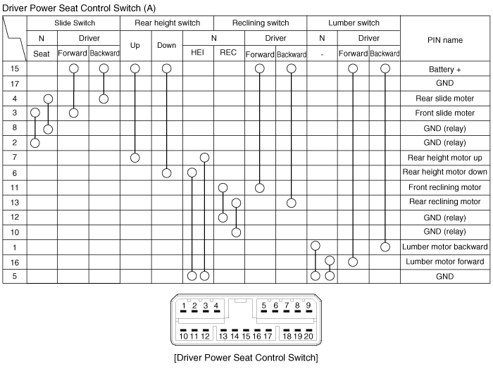 Когда переключатель сиденья с электроприводом находится в каждом положении, убедитесь, что