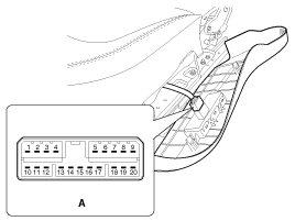 Снимите переключатель управления сиденьем с электроприводом (А).