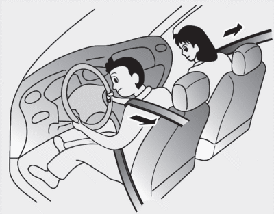 Когда автомобиль внезапно останавливается или пассажир пытается наклониться вперед быстро натяжитель ремня безопасности зафиксируется в нужном положении. При некоторых лобовых столкновениях сработает преднатяжитель и натянет ремень безопасности в более плотное прилегание к тело оккупанта.