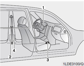 Датчик, активирующий подушку безопасности SRS, связан с преднатяжителем. ремни безопасности. На панели приборов загорится контрольная лампа подушки безопасности SRS. в течение примерно 6 секунд после перевода ключа зажигания в положение ON, а потом он должен выключиться. Если натяжитель не работает должным образом, предупреждение загорится, даже если подушка безопасности SRS исправна. Если предупреждение лампа не загорается, горит постоянно или загорается, когда автомобиль во время движения обратитесь к авторизованному дилеру HYUNDAI для проверки преднатяжителей ремней безопасности. и подушки безопасности SRS как можно скорее.