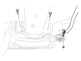 Нажмите на стопорный штифт, отсоедините главный разъем заднего бампера (В).
