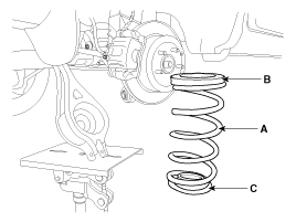 Снимите пружину (А), верхнюю накладку (В) и нижнюю накладку (С).