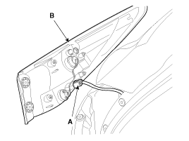 Снимите фонарь задней подъемной двери (В), отсоединив разъем (А).