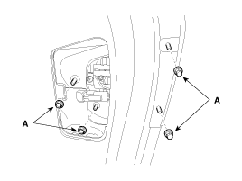Ослабьте гайки (А) после снятия крышки фонаря двери багажного отделения.