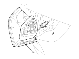 сборки, замените лампу фонаря заднего хода (A) и лампу заднего фонаря (B) после