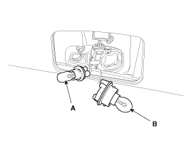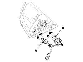 Поверните патрон против часовой стрелки, чтобы снять лампу заднего/стоп-сигнала (А) и лампу указателя поворота (В).