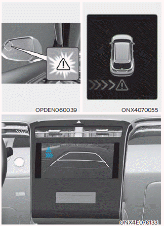Чтобы предупредить вас о приближающемся автомобиле сзади слева или справа от вашего автомобиля, сигнальная лампа на зеркале бокового вида может мигать, предупреждающее сообщение может появится на комбинации приборов, а может прозвучать звуковое предупреждение.