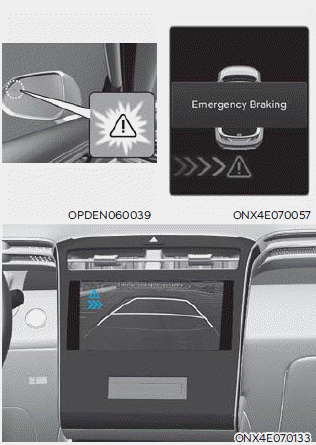 Если столкновение неизбежно, аварийная торможение помогает предотвратить столкновение с приближающимися транспортными средствами из левой и правой стороны или вашего автомобиля.