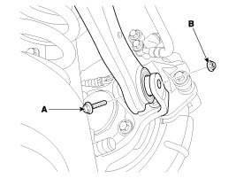 Снимите верхний рычаг, ослабив болт (А) и гайку (В) заднего верхнего рычага. [Только 2WD]