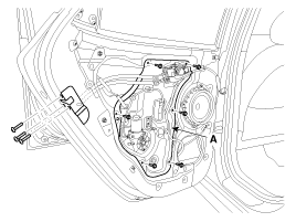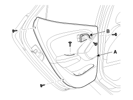 Ослабьте крепежные винты, затем снимите обивку двери (А).