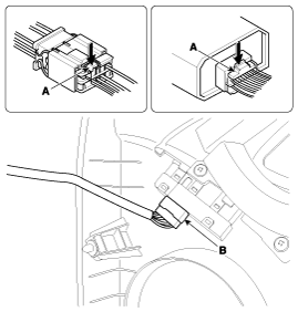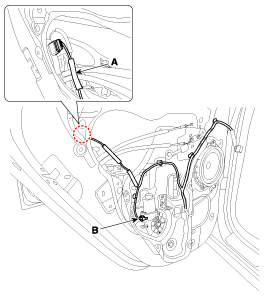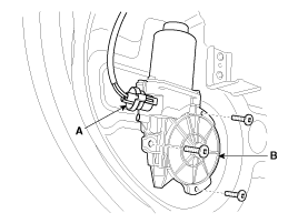 Отсоедините разъем (А) и разъем электродвигателя стеклоподъемника (В).