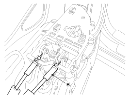 Отсоедините трос внутренней ручки (B).