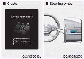 При выключении двигателя и открытии дверь водителя после открытия и закрывая заднюю дверь или заднюю дверь, Предупреждающее сообщение «Проверьте задние сиденья» появляется на комбинации приборов.