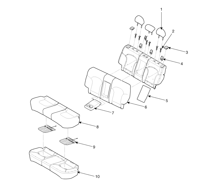 Hyundai Tucson: сиденье и сиденье с электроприводом / компоненты заднего сиденья и расположение компонентов
