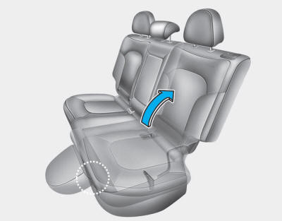6. Потяните вверх рычаг спинки сиденья, затем сложите сиденье по направлению к передней части автомобиля.