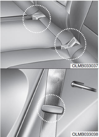 1. Вставьте пряжку заднего ремня безопасности в карман между спинкой заднего сиденья и подушку и вставьте лямку ремня безопасности заднего сиденья в направляющую, чтобы сиденье не ремень от повреждений.