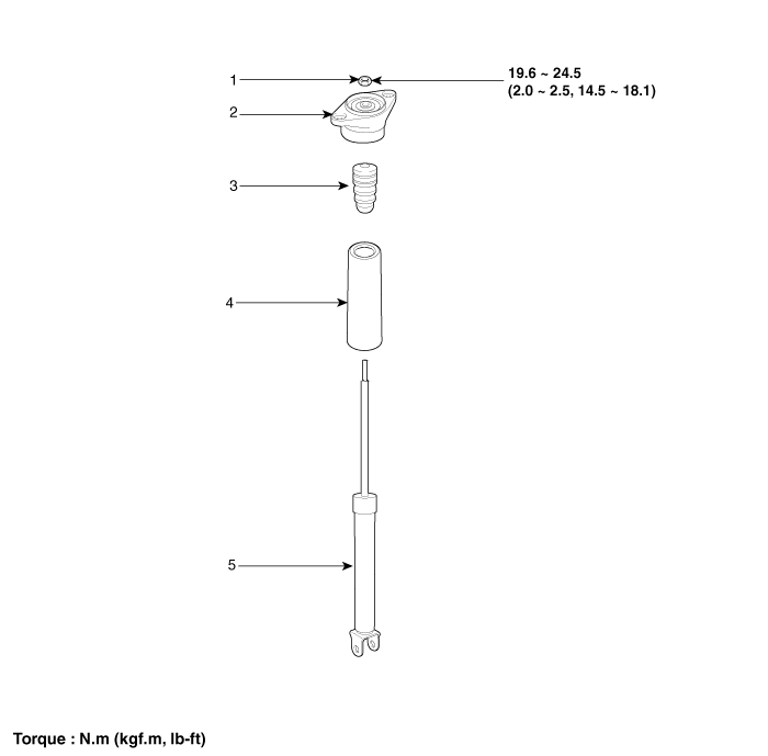 Hyundai Tucson: Система задней подвески / Компоненты заднего амортизатора и расположение компонентов