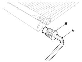 Удалите влагопоглотитель (А) из конденсатора с помощью длинногубцев. Проверьте наличие осушителя и забитого фильтра нижней крышки.