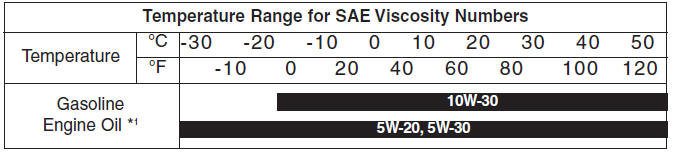 *1 Для лучшей экономии топлива рекомендуется использовать моторное масло класс вязкости SAE 5W-20 (API SM/ILSAC GF-4). Однако, если моторное масло недоступно в вашей стране, выберите подходящее моторное масло по таблице вязкости моторного масла.