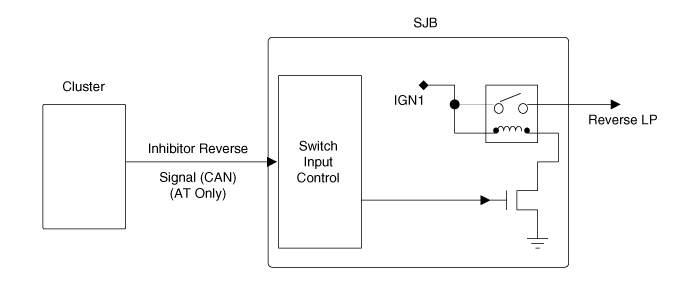 Защелка подъемных ворот или лампа багажного отделения (электропривод подъемных ворот) Управление катушкой реле