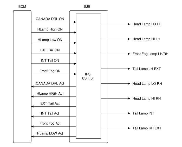 Выходной статус ламп и задних противотуманных фар отправляется в BCM в виде сообщения CAN