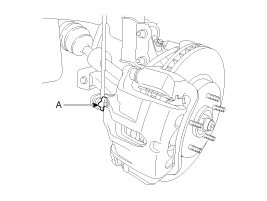 Ослабьте винт для прокачки правого заднего тормоза (А), чтобы воздух вышел из системы. Затем надежно затяните прокачной винт.