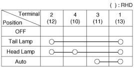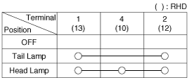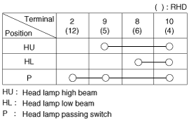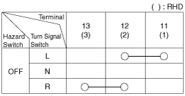 Когда многофункциональный переключатель находится в каждом положении, убедитесь в наличии непрерывности между клеммами, расположенными ниже.