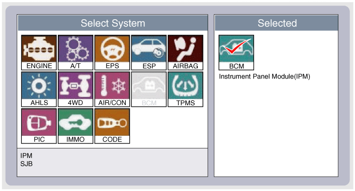 Если требуется диагностика многофункционального переключателя, выберите модель и "IPM".