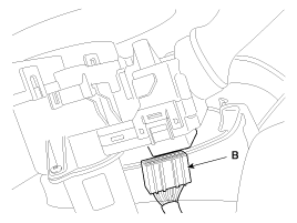 Отсоедините разъем переключателя освещения (А) и разъем переключателя стеклоочистителя (В).