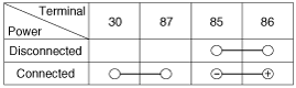 Не должно быть непрерывности между клеммами № 30 и № 87 при отключении питания.