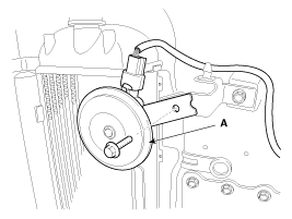Выверните болты и отсоедините разъемы звукового сигнала, затем снимите звуковой сигнал низкого тона (А).