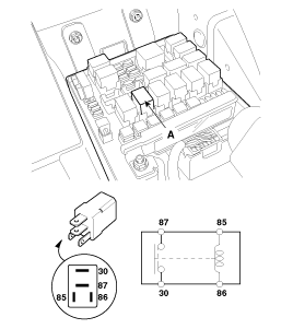 Выньте реле звукового сигнала (А) из блока реле в моторном отсеке.